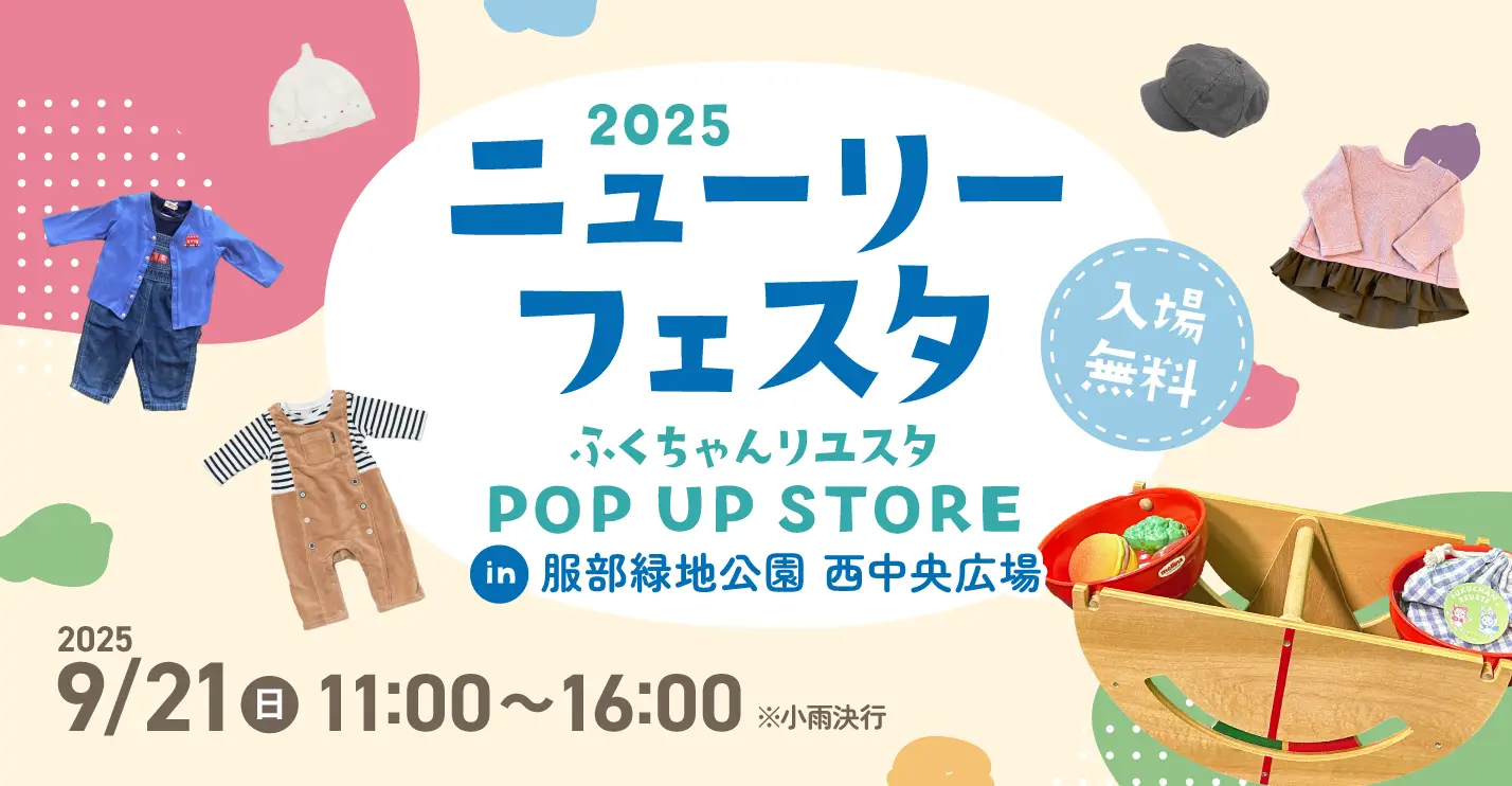 レクストホールディングス株式会社(本社:大阪府大阪市中央区、代表:小栗 拓也)の子会社で、キッズリユース事業「ふくちゃんリユスタ」を展開する株式会社REGATE(本社:大阪府大阪市中央区、代表:福島 道子)は、ネッツトヨタニューリー北大阪株式会社(本社:大阪府豊中市稲津町、代表:小西 敏仁)および、大和リース株式会社(本社:大阪府大阪市中央区、代表:森田 俊作)が代表を務める「服部緑地スマイルパートナーズ」が主催する、こどもの交通安全・防災啓発イベント「ニューリーフェスタ 2025」に参加いたします。イベントは2025年9月21日(日)、服部緑地 西中央広場にて開催され、「ふくちゃんリユスタ」からは前回好評をいただいたリユース体験ブースに加え、キッズ・ベビーのリユース商品のお得な販売を実施します。