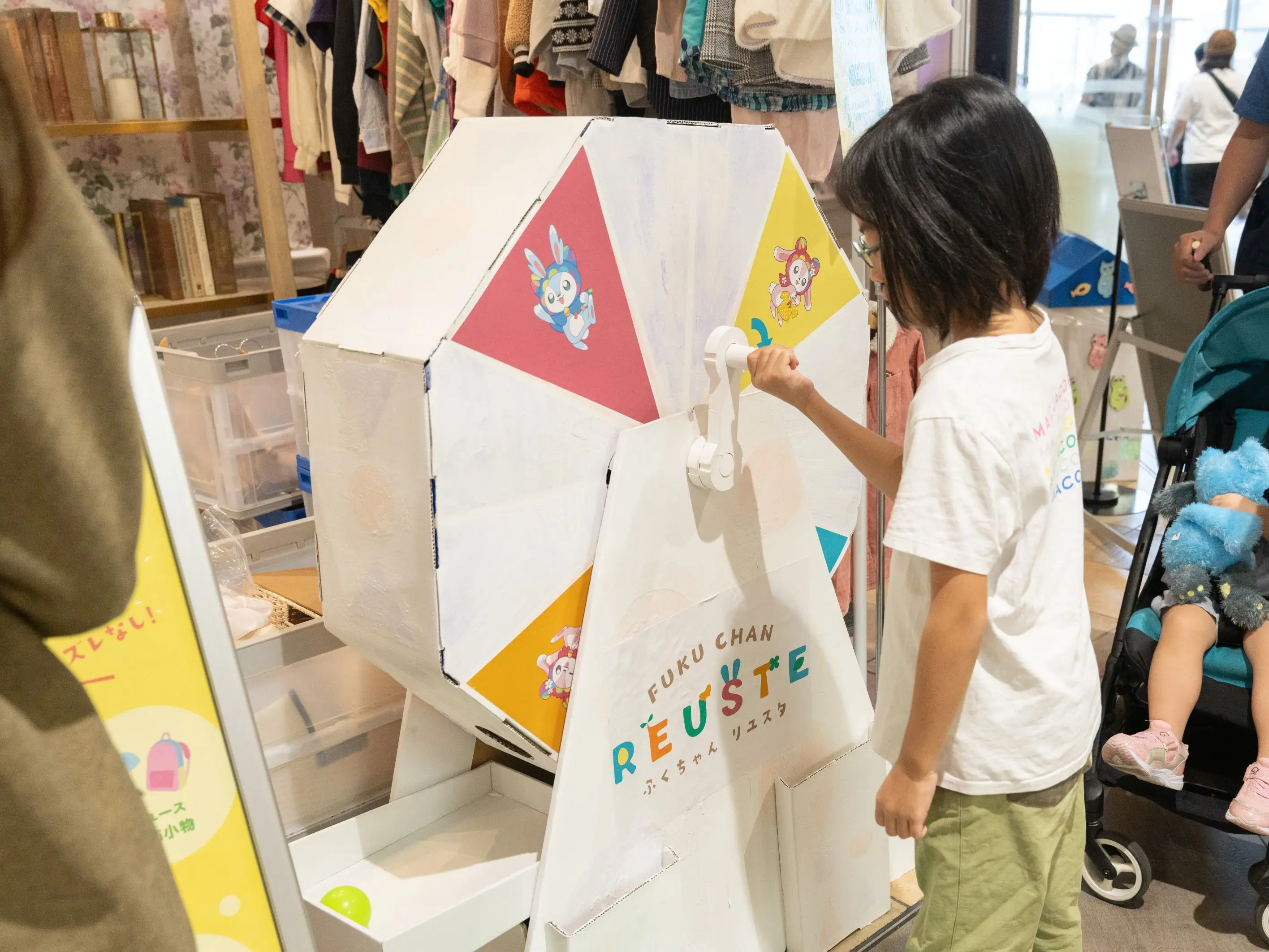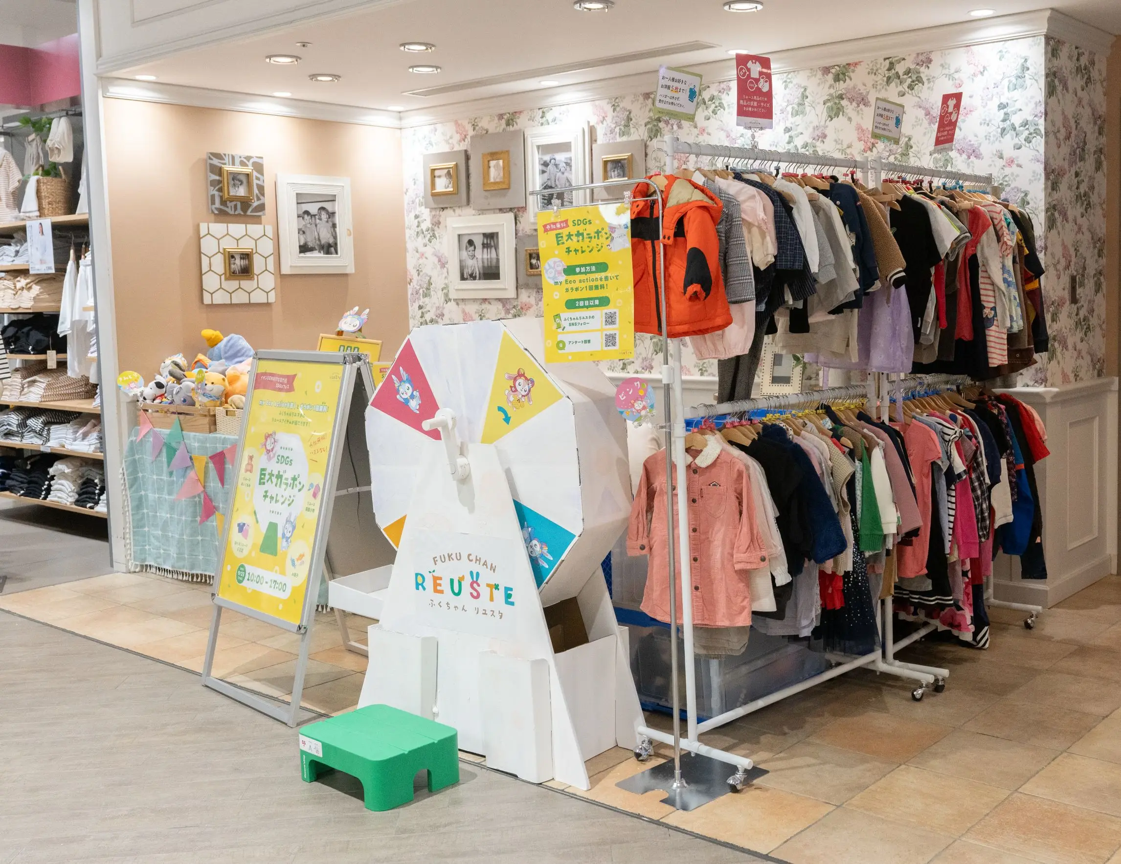 2022年に始動した「ふくちゃんリユスタ」は、こども服や知育玩具・ベビーカーなど、使用期間の短いベビー・こども用品を、次に必要な子育て世代へ”つなぐ”ことをミッションとするキッズリユースサービスです。店舗運営だけでなく、こども向けのフリマイベントを主催するなど、さまざまな活動を通して、“もっと楽しいリユース”の輪を広げていくことを目指しています。